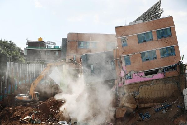 今回の事故も予見された人災だったことが分かった。専門家と幼稚園側の証言がそれを示している。ソウル市立大のイ・スゴン教授は昨日、「幼稚園側の依頼で3月末に現場を点検し、片麻岩地質が脆弱で崩壊の危険性が高いと警告した」という諮問意見書を公開した。6カ月前にすでに崩壊の危険を予測していたのだ。幼稚園側も地下1階・地上3階の幼稚園の隣で工事が始まった後、建物が揺れて亀裂が生じたため諮問したと明らかにした。幼稚園側は建物の床に30-40ミリの亀裂が生じたとし、銅雀(トンジャク)区庁と建設業者側に問題を提起したという。しかし区庁はいかなる措置を取らなかった。業者側も暴雨の時の地盤沈下に備えていなかった。あきれるしかない。徹底的に調査して責任を問わなければいけない。