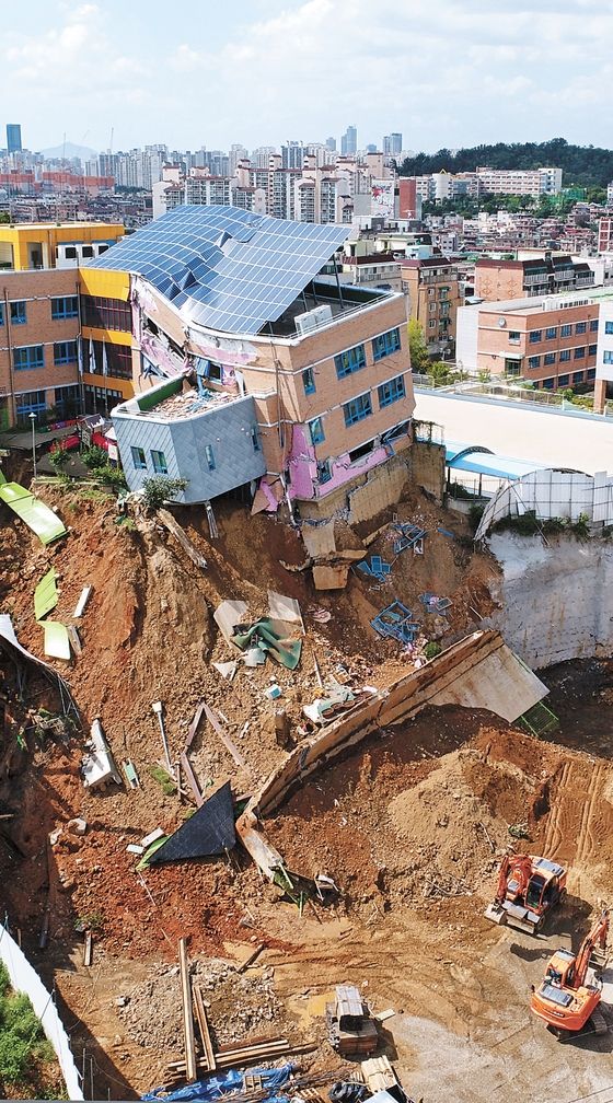 今回の事故は工事現場の管理問題に対する「レッドカード」だ。都心では空き地さえあれば傾斜地に段々畑をつくるように工事が行われる。上道幼稚園付近のように脆弱な片麻岩地質であろうと地盤の危険性があろうと関係なく許可を出す。先月発生した衿川区(クムチョング)マンションのシンクホール事態もそのような責任から自由でない。いい加減な行政と乱開発の後遺症だ。