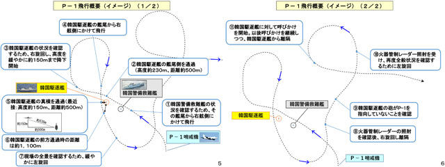 韓国側は、「人道主義的救助作戦」に従事していた韓国駆逐艦に、P-1が低空で脅威を感じさせる飛行をしたと主張。