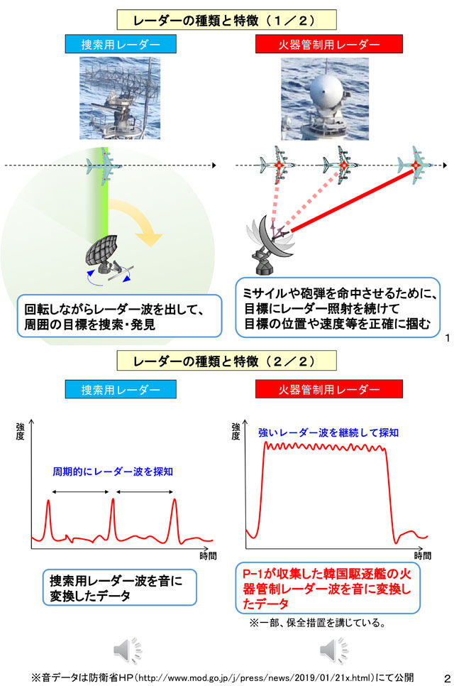 P-1が探知したものが韓国駆逐艦の火器管制用レーダー「STIR-180」からのレーダー波であるとの客観的な事実を提示した。